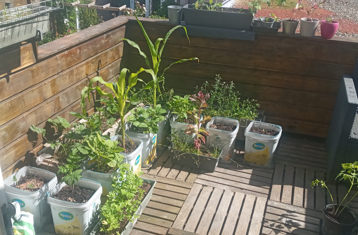 I was able to put 2 Sugar Corn, 3 Potatoes, some lettuce and random herbs on my neighbours balcony, they didn't mind because they like this kinda stuff