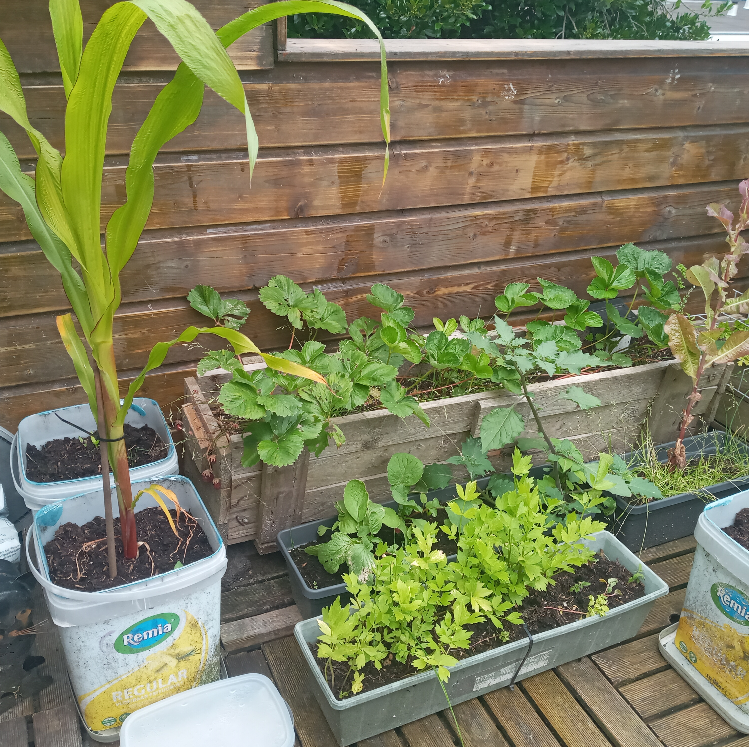 For now, some of my pots stand empty until we hit at least a constant 10 degrees celcius at night, I have faith in the corn though, I normally grow that over at mom and pop's place because I can put a few in a row, but I wanna see if I can grow a good enough SugarCorn stalk in a simple 10 liter bin,