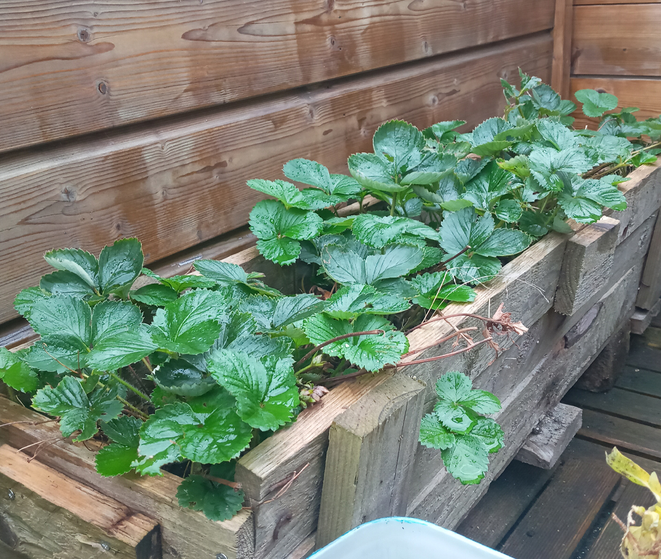 That strawberry plant from last year is powering through though, this little thing is invincible and I think I'm gonna give it the whole wooden planter to grow,