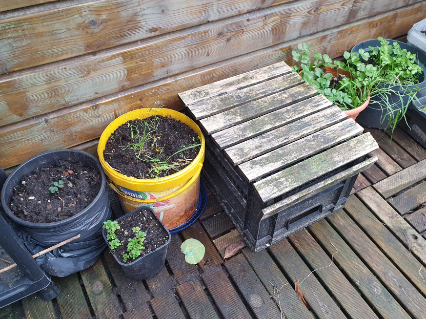 The big wooden planter with tons of random herbs is doing fine though! Can always grab a small handfull and use it in the kitchen
