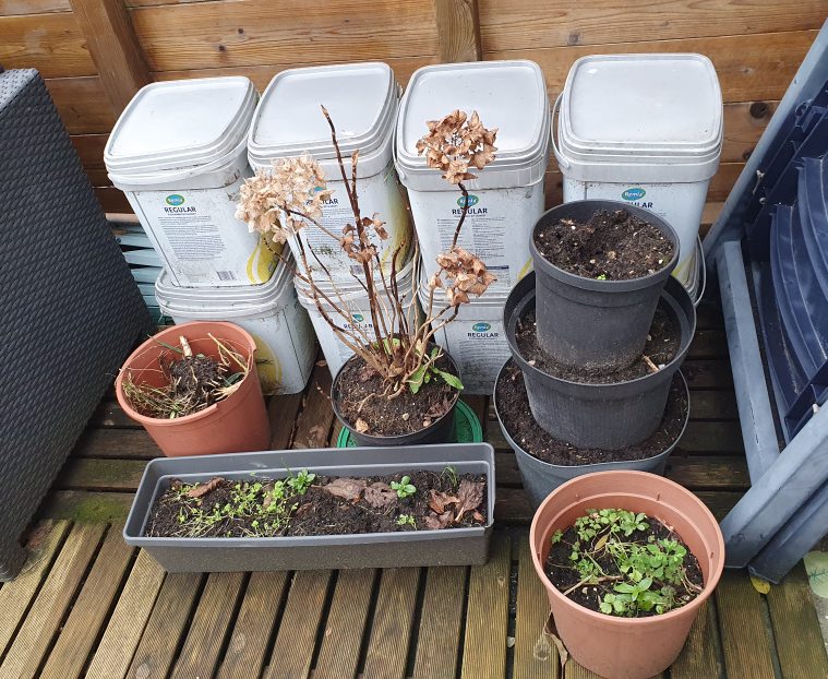 I've put the lid on the pot's and stacked them in the corner of the balcony for now along with all the other stuff I can look away from for a while.