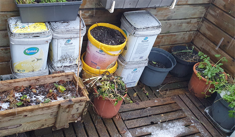 I have a strawberry plant indoors just to be sure, but it seems like the one in the wooden planter keeps living. Large parts are dead, but under that there are still some fresh green leaves that against all odds slowly grow on. The Lavas also just keeps going.