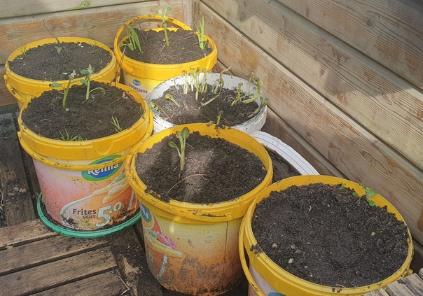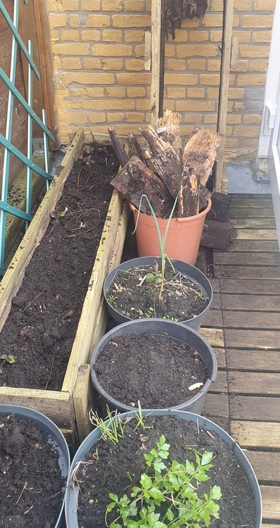 I've readied my potato pots and got jumpscarred by some older ones still growing. Some small ones I missed managed to overwinter and have started growing. I still have some of my own potatoes for seeing, but I'm gonna see if some of the older ones will grow to normal size, despite coming from a little forgotten sprout.